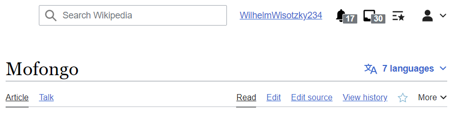 Vector 2022 represents a significant amount of research and development into making the Vector interface easier to understand more modern-looking. Figure 13 shows the top of a page from the English-language Wikipedia, using the Vector 2022 skin. (Vector 2022 is already the default skin on some languages of Wikipedia, though not yet the English one.) The top of the page is where you can see most of the differences from the Vector skin: the search input has been moved to the very top instead of being among the tabs; the user action links have been replaced with icons; the set of interwiki links to other languages has been moved to a dropdown at the top instead of being within the sidebar; and the tabs have a more modern look, being represented by just a line at the bottom instead of a tab outline.