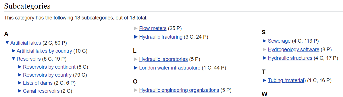 The CategoryTree extension adds the ability to drill down into large category trees from within a single category page – it's used on Wikipedia for that purpose. Earlier there was an image of the default listing of subcategories in a category page; but Figure 18 shows that same display, with some of the subcategories “opened up” to show their own subcategories.