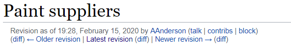- the date and time in which the edit was made (configured for the current user's time zone), which link to a page showing that revision